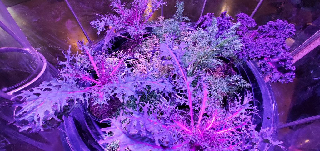 Inspired by the classic claw game, this piece allows the viewers to attempt to harvest edible plants inside for a tasty reward. Currently it is planted with kale, cilantro & mint.
