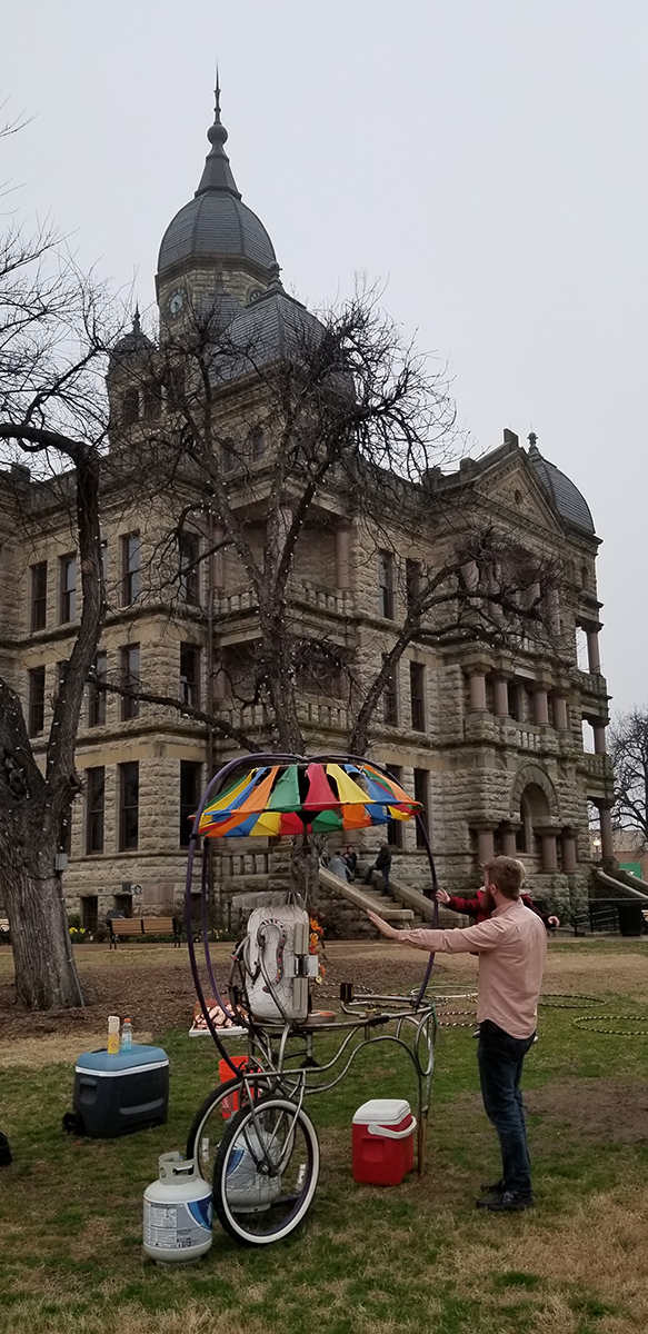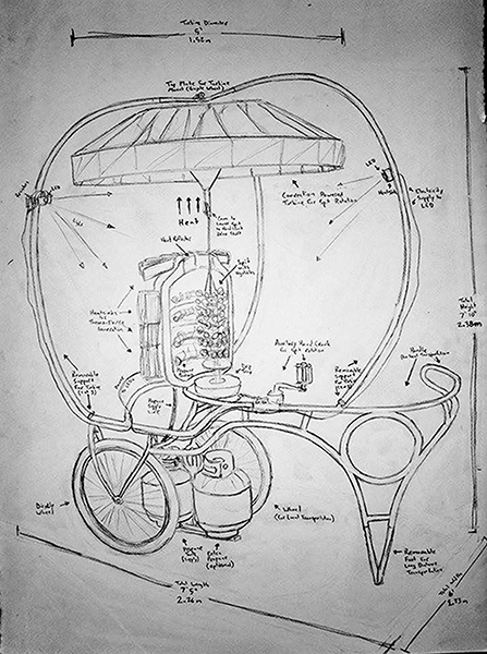 The rickshaw provides a jumping off point for complex conversations with complete strangers, as it is both an attempt to bridge the distance between people by sharing food as well as knowledge. No matter what age, any person can look at the rickshaw with a sense of wonder at the world and the laws and processes that shape it.